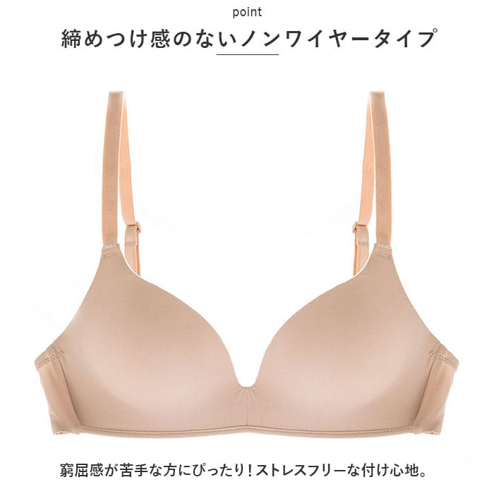 | 商品説明 | オールシーズン大活躍。快適にバストメイクできる、ノンワイヤーブラが新登場。【締めつけ感のないノンワイヤータイプ】窮屈感が苦手な方にぴったり!ストレスフリーな付け心地。【バストのカタチをキープ】バスト部分に、立体感のあるパッドを内蔵。丸みのある美しいシルエットに。【サラッとした肌触り】滑らかで軽い生地感で、汗ばむ季節もムレにくい!洗濯後もサッと乾く素材。【3段階サイズ調節OK】背面ホックで簡単着脱。自分サイズにフィット。【デイリー使いにぴったり】シンプルなワンカラーの無地デザイン。凹凸のある装飾を控えており、トップスに響くにくいのもポイント。【お気に入りをチョイス】選べるサイズ&肌なじみの良いカラーバリエーション。洗い替え用に色違いで揃えるのもおすすめ。 |