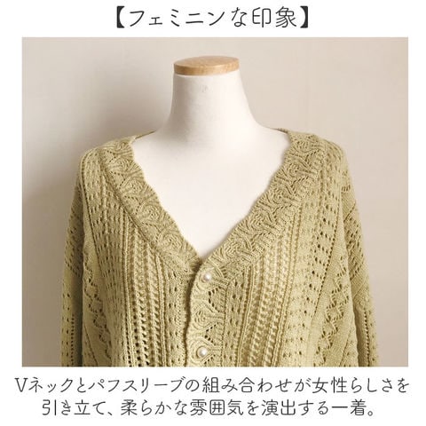 商品説明【透かし編みで軽やか】パール調ボタンが上品な、抜け感のある万能ニット。【体型カバーも叶う】ゆったりシルエットで気になる二の腕や腰回りを自然にカバーし、リラックス感のある着こなしに◎【フェミニンな印象】Vネックとパフスリーブの組み合わせが女性らしさを引き立て、柔らかな雰囲気を演出する一着。【季節の変わり目に最適】透かし編みの軽やかな素材感で、春夏の冷房対策や秋口の温度調節に◎【幅広いコーデに対応】デニムにもスカートにも合わせやすく、デイリーからデートまで活躍する万能アイテム♪