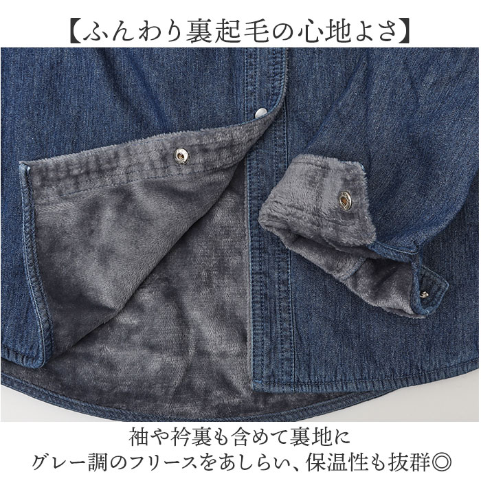 | 商品説明 | 【裏フリースがあったかい】暖かさと軽さを両立!軽量デニムジャケット。【ふんわり裏起毛の心地よさ】袖や衿裏も含めて裏地にグレー調のフリースをあしらい、保温性も抜群◎【着脱も楽ちん】フロントと袖口のボタンはスナップボタンで、手軽に羽織れる〇【程よい丈感】お尻にかかる程度の丈感で腰回りをカバーしながら、すっきりとしたシルエットを実現。【便利な胸ポケット付き】左右の胸元にオープンポケットを装備! |