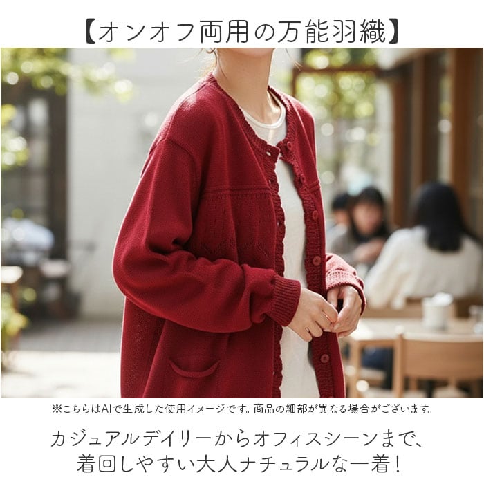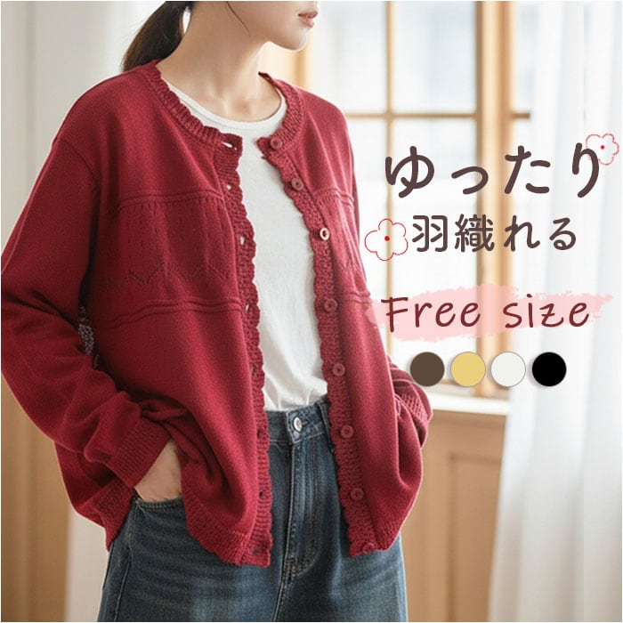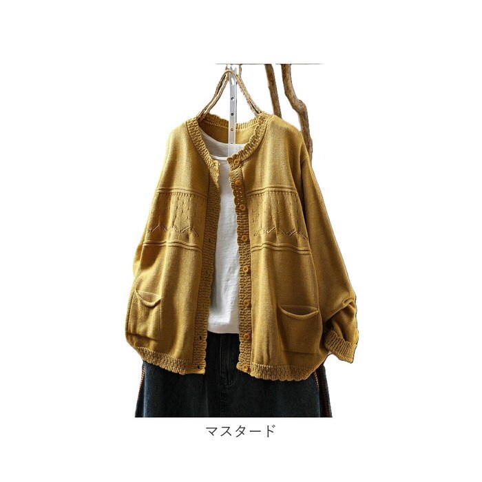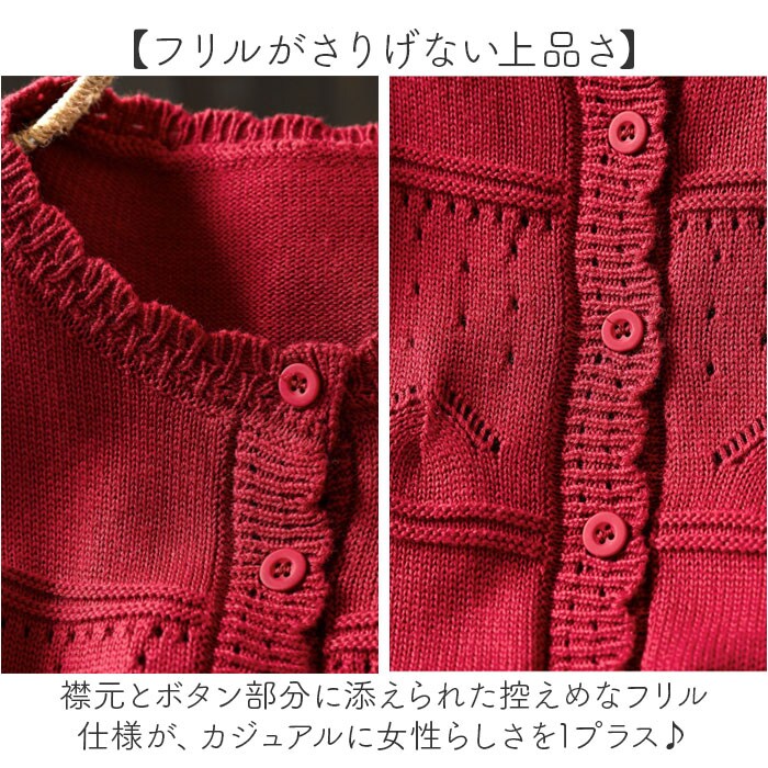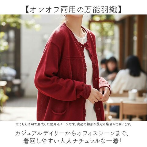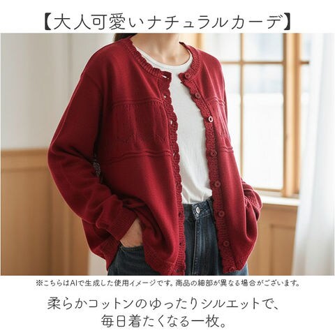 | 商品説明 | 【大人可愛いナチュラルカーデ】柔らかコットンのゆったりシルエットで、毎日着たくなる一枚。【羽織るだけで映えスタイル】1枚羽織るだけで、こなれ感あふれるナチュラルコーデが完成する前開きスタイル◎【ゆったりシルエット美人】ゆとりあるシルエットが、体のラインを気にせず着こなせるうれしい設計〇【フリルがさりげない上品さ】襟元とボタン部分に添えられた控えめなフリル仕様が、カジュアルに女性らしさをプラス♪【肌ざわりの心地よさ】やさしい柔らかさと、季節の変わり目にぴったりの軽い着心地。【オンオフ両用の万能羽織】カジュアルデイリーからオフィスシーンまで、着回しやすい大人ナチュラルな一着! |