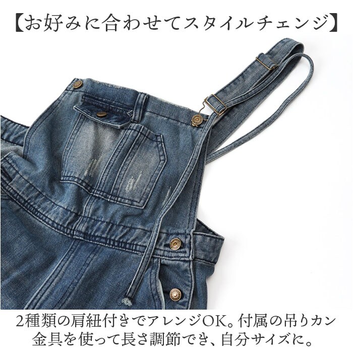 | 商品説明 | 【カジュアルコーデの定番アイテム】ヘビロテ間違いなし!おしゃれに着こなせる「デニムサロペット」が新登場。【季節や流行りを気にせず長く愛用◎】どんなアイテムとも相性が良く、シーズンレスで活躍。トレンドに左右されないのもポイント。【お好みに合わせてスタイルチェンジ】・2種類の肩紐付きでアレンジOK。付属の吊りカン金具を使って長さ調節でき、自分サイズに。【小物を入れておけるポケット】前後左右、フロントにポケットを配置。スマホや薄手のハンカチなどをIN。【程よい抜け感をプラス】ダメージ加工や裾内側にはスリットを入れ、おしゃれ度アップ☆【トップスを選ばず着回し力抜群】Tシャツと合わせるも良し。ガーリーなブラウスと合わせれば、甘辛ミックスコーデの完成♪ |