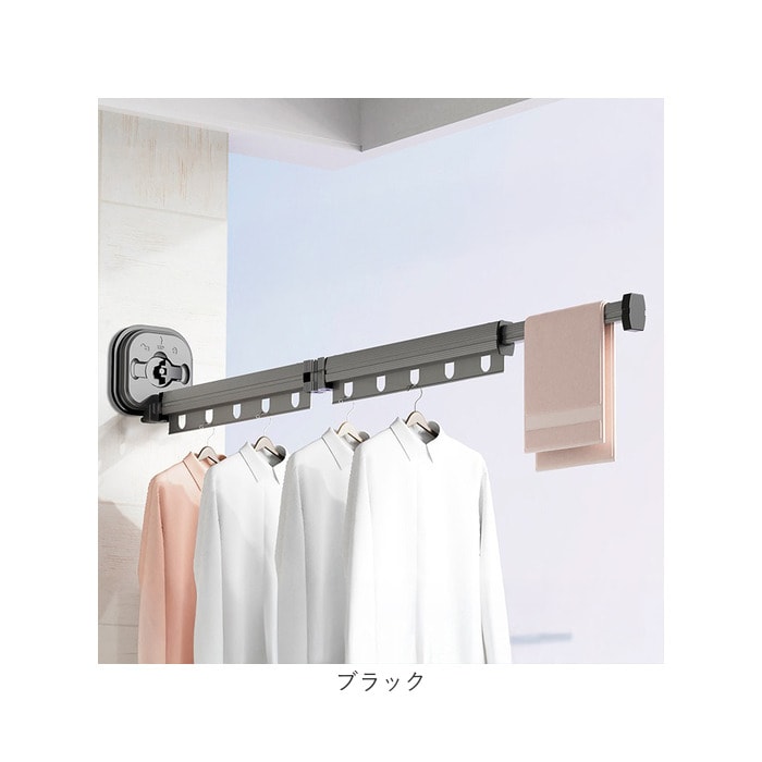 吸盤式物干しラック 壁掛け 折り畳み【ブラック】【物干しラック】