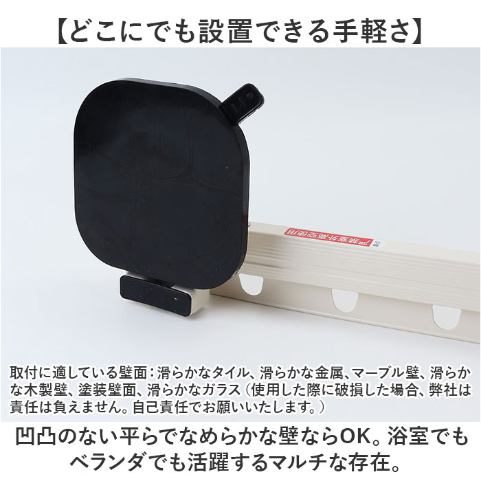 | 商品説明 | 【工具いらずで、すぐに干せる】毎日の洗濯が、もっと自由でスマートに。「吸盤式物干しラック 壁掛け 折り畳み」が登場。【好きな角度で、もっと自由に】自在に動くアームで自由に角度を変えて、いつもの洗濯スペースがもっと快適に。【ハンガーがズラリと並べられる】アームにはハンガー用ホールが10個。干しやすさも風通しの良さもアップ!【タオルも小物も、ちょい干しOK】先端のアームがさらに伸びて、タオルやマスクなどのちょっと干しに便利。【どこにでも設置できる手軽さ】凹凸のない平らでなめらかな壁ならOK。浴室でもベランダでも活躍するマルチな存在。【女性ひとりでもラクラク取り付け】工具不要、穴あけ不要。吸盤を貼ってロックするだけの簡単設置。【軽くて丈夫、頼れる素材】サビにくくて長く使えるアルミニウム合金。軽さも使いやすさの決め手☆【使わないときはすっきり収納】折りたたみ式だから、使わない時はぺたんとしまえて、お部屋すっきり。【お部屋になじむ、ミニマルデザイン】シンプルで清潔感のあるデザイン。使う場所を選ばない汎用性の高さもポイント。 |
