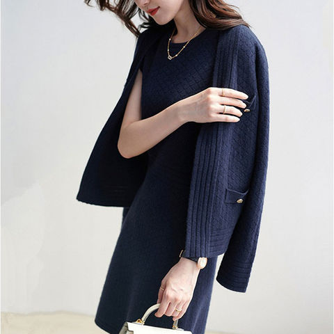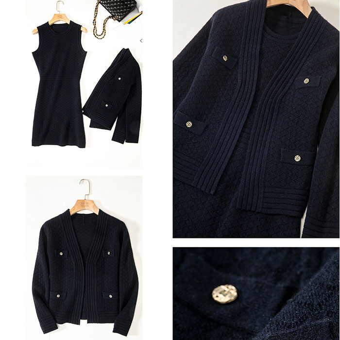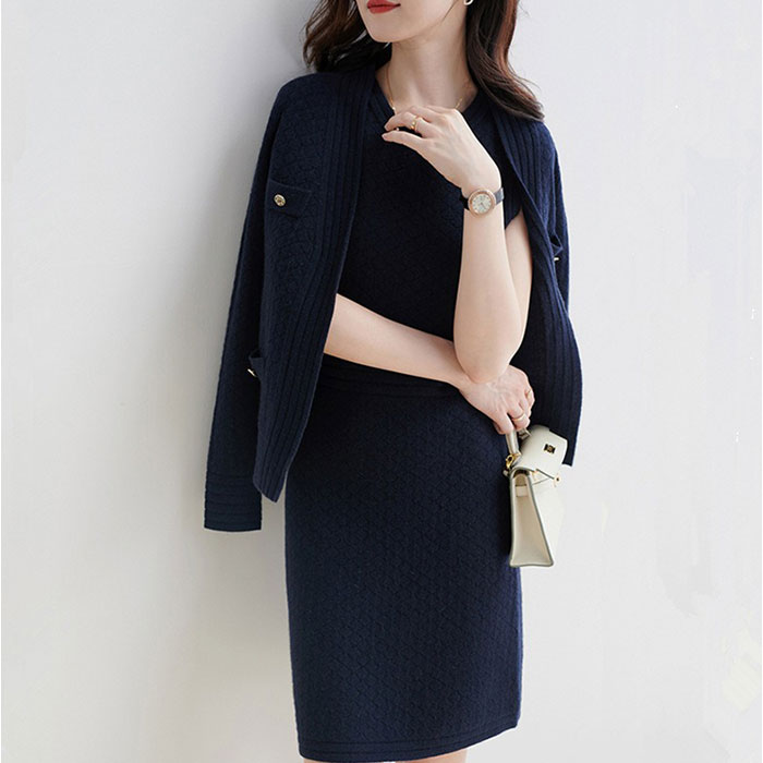 ニットワンピースセットアップ【ネイビー】【Lサイズ】