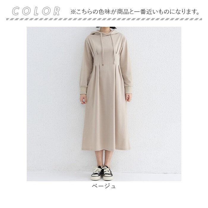 ワンピース パーカー ロング丈 mmopi921c【ベージュ】【Lサイズ】