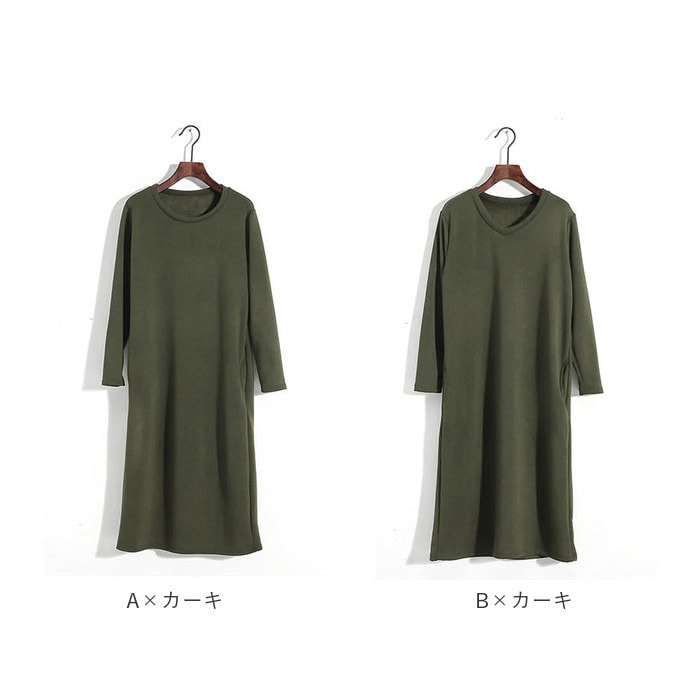 ワンピース 長袖 2タイプ mmops1121a【B×カーキ】【Lサイズ】