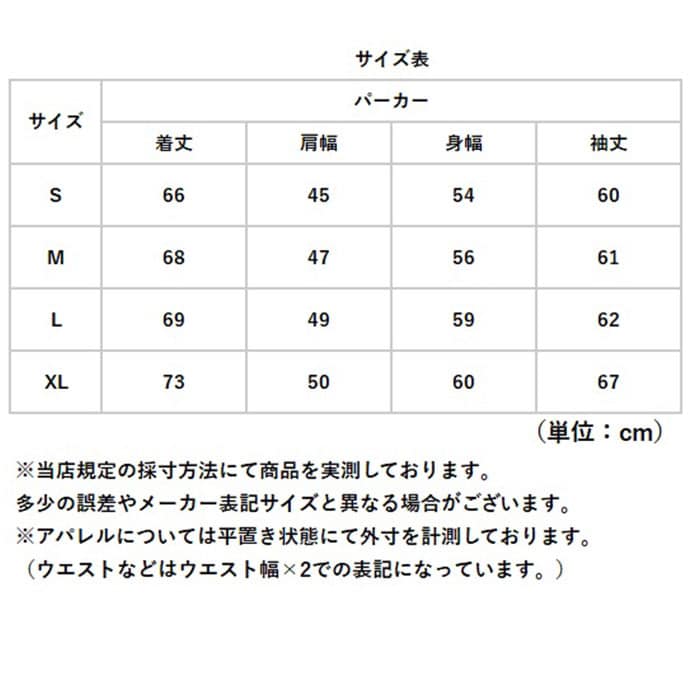 | サイズ | [ユニセックス] ・Sサイズ ・Mサイズ ・Lサイズ ・XLサイズ ※サイズについて詳細は、商品画像の中にあるサイズ表をご覧くださいませ。 |