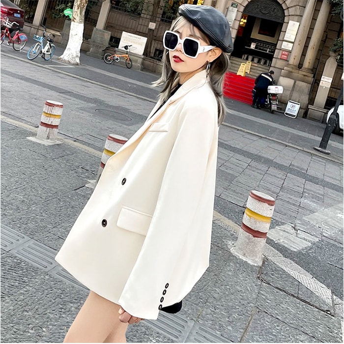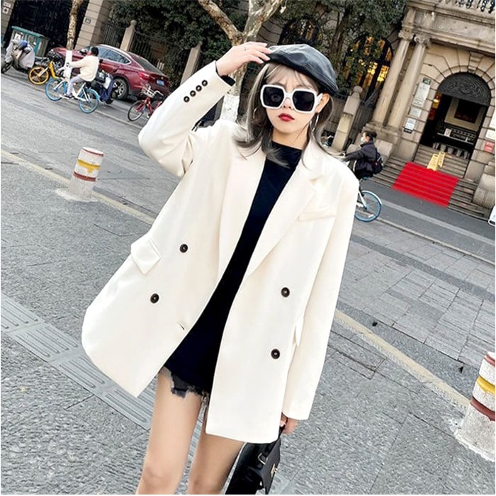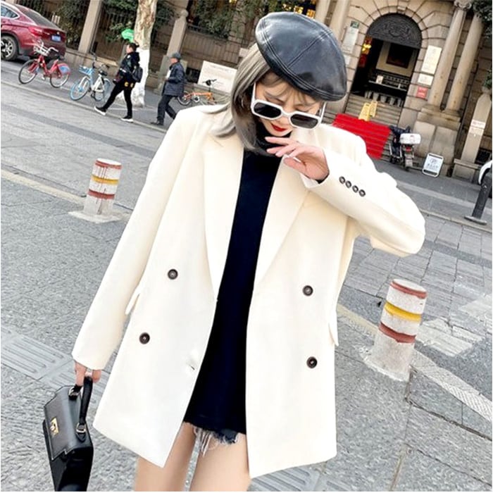 テーラードジャケット アウター コート【アイボリー】【ワンサイズ(L)】