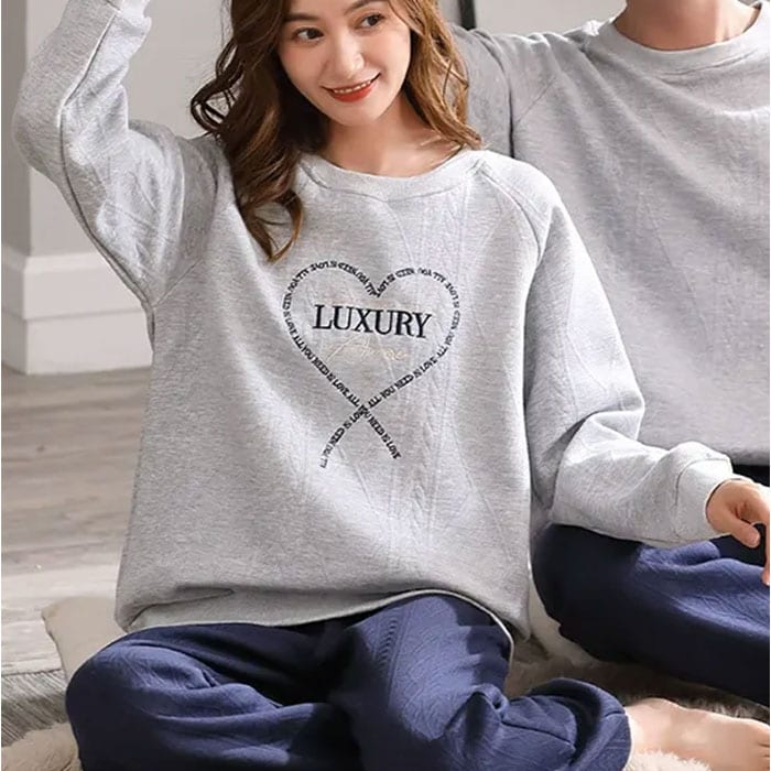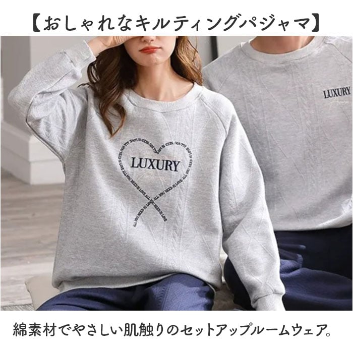 キルトニットパジャマ セットアップ リラックス【グレー】【Lサイズ】