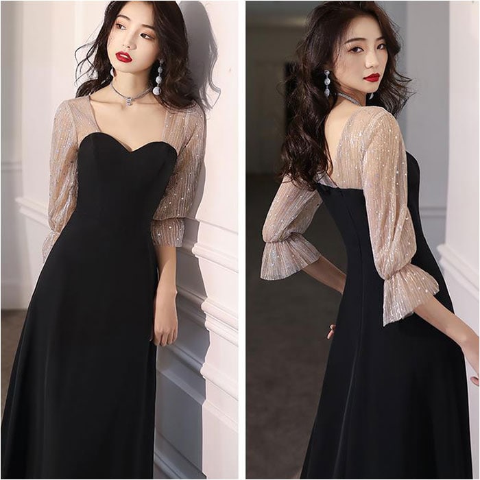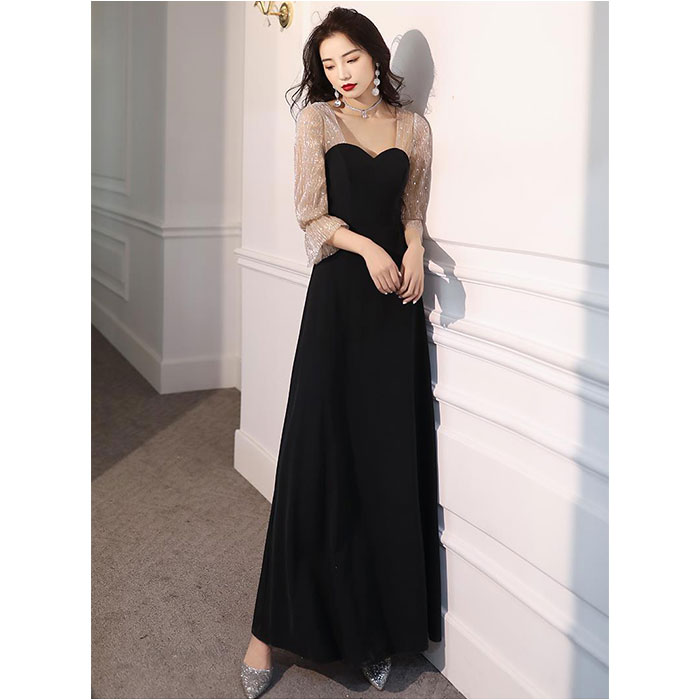 パーティードレス ロング 上品 mmpdress1214b【ブラック】【Sサイズ】