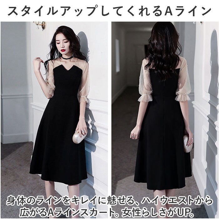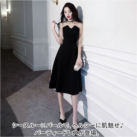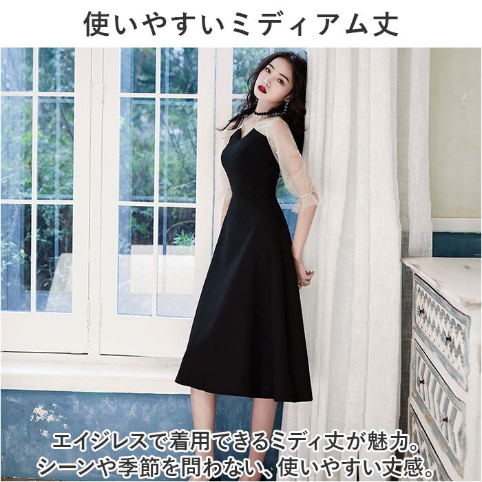 パーティードレス ミディ丈 mmpdress1214c【ブラック】【XLサイズ】