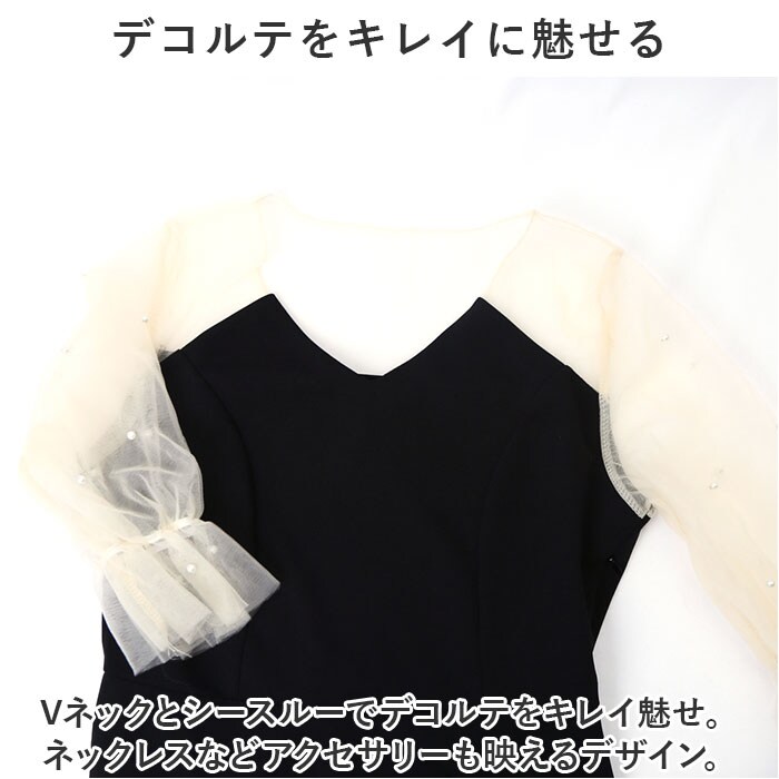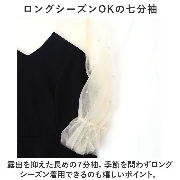 | 商品説明 | シースルー×パールで、ヘルシーに肌魅せ♪パーティードレスが登場。【上品に仕上がるヘルシー肌魅せ♪】ヘルシーな肌魅せが上品なドレス。細部までこだわったデザインはお呼ばれスタイルにぴったり♪【パールをトッピングして華やかに】シースルー袖にはイミテーションパールをトッピング。シンプルだけどキラッと華やかな印象に☆【スタイルアップしてくれるAライン】身体のラインをキレイに魅せる、ハイウエストから広がるAラインスカート。女性らしさがUP。【ロングシーズンOKの七分袖】露出を抑えた長めの7分袖。季節を問わずロングシーズン着用できるのも嬉しいポイント。【使いやすいミディアム丈】エイジレスで着用できるミディ丈が魅力。シーンや季節を問わない、使いやすい丈感。【デコルテをキレイに魅せる】Vネックとシースルーでデコルテをキレイ魅せ。ネックレスなどアクセサリーも映えるデザイン。【いろいろなシーンで活躍】お食事会やセレモニー、結婚式などのお呼ばれシーンで活躍。ひとつあると大活躍☆ |