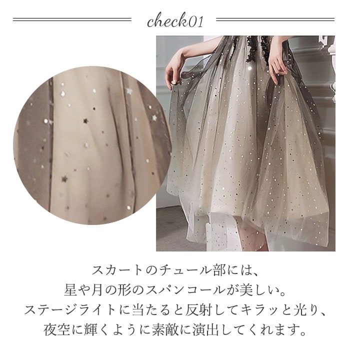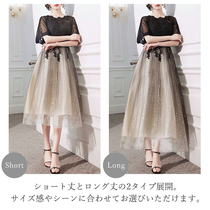| 商品説明 | ステージ映えする♪パーティドレスが新発売♪(ショート丈orロング丈)【キラッと光る♪】スカートのチュール部には星や月のスパンコールが反射でキラッと光る♪楽器や演劇の発表会など華やかなシーンにピッタリ☆【気になるところをさりげなくカバー】ふわっと広がるフレアスカートや五分丈のスリーブは、気になるお尻まわりや腕まわりをさりげなくカバーしてくれるのも嬉しいポイント。【大人っぽさもあり!】トップス部分はシースルー仕様で、レースの透け感が大人っぽい♪フェミニンになり過ぎず大人女子さんにもおススメ♪【脚長効果も】ハイウエストな切り返しもポイント。脚長効果やスタイルアップも叶うオシャレアイテム!【編み上げリボンタイプ】背面はドレスを個性的な印象にする編み上げタイプ。背中が開いたデザインで程よいセクシーさも!【選べるスカート丈】ショート丈とロング丈の2タイプ展開!お好みやシーンでチョイス可能♪ |