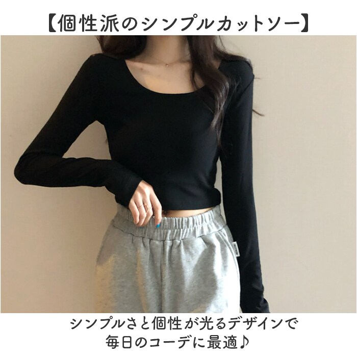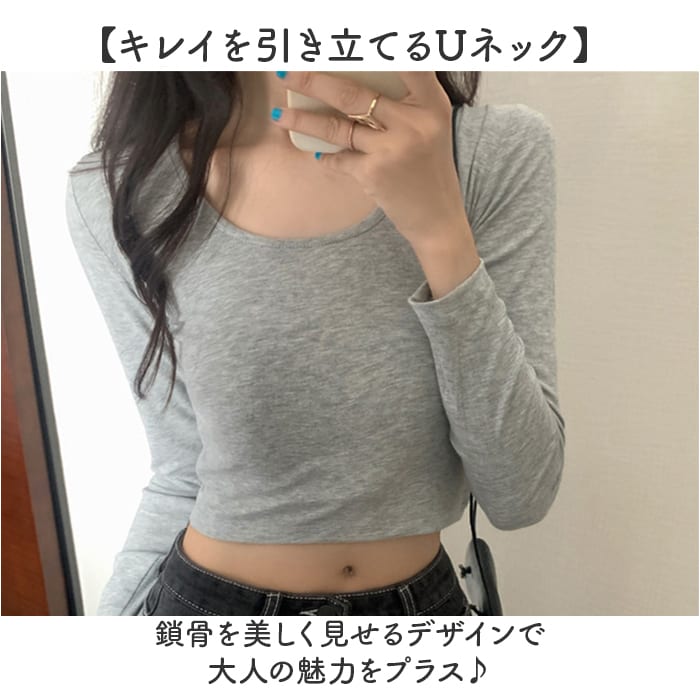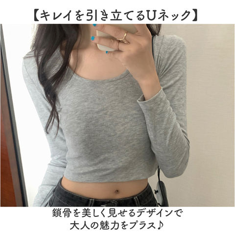 | 商品名 | シンプルトップス Uネック 長袖Tシャツ |