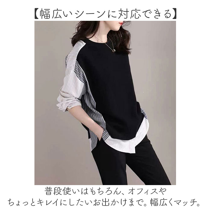 プルオーバー 重ね着風 mmpo426e【ブラック】【Lサイズ】
