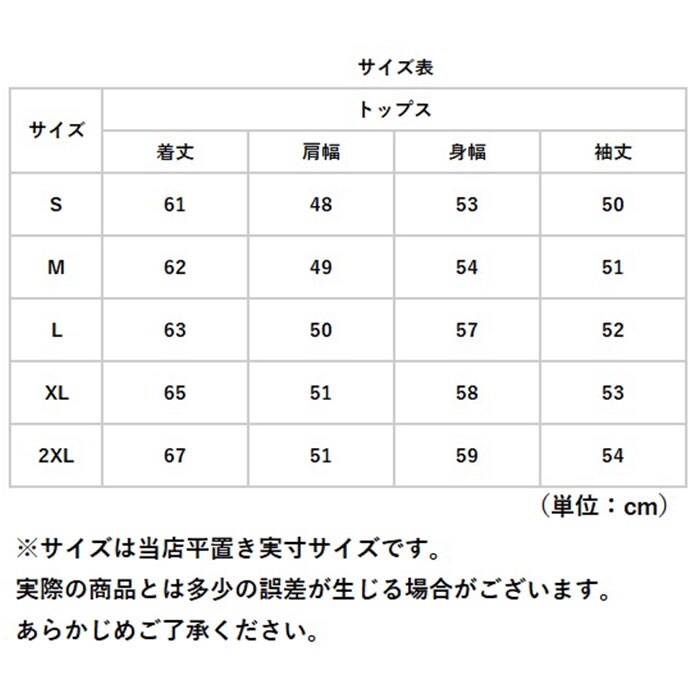 | サイズ | [レディース] ・Sサイズ ・Mサイズ ・Lサイズ ・XLサイズ ・2XLサイズ ※サイズについて詳細は、商品画像の中にあるサイズ表をご覧くださいませ。 |