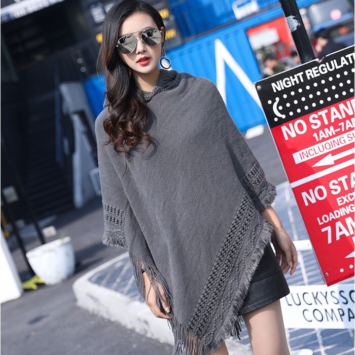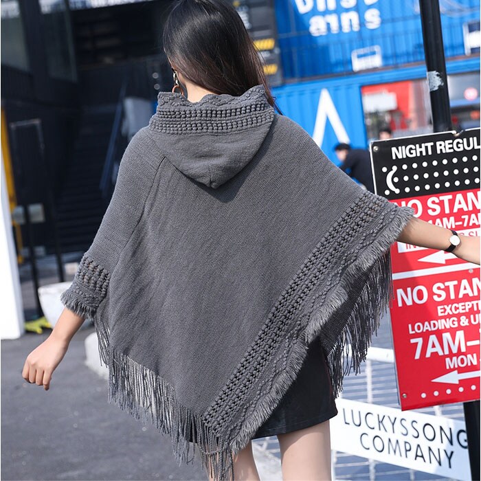 ポンチョカーディガン ニット フード付き【ダークグレー】