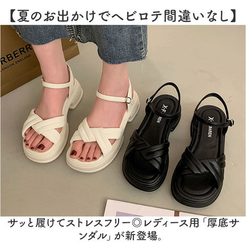 | 商品説明 | 【夏のお出かけでヘビロテ間違いなし】サッと履けてストレスフリー◎レディース用「厚底サンダル」が新登場。【自然なスタイルアップで足元すらり】履くだけで身長がちょこっとアップ☆ワンピースやパンツスタイルなどに、素敵にマッチ。【夏にぴったりなオープントゥ】つま先があいた涼しげなデザイン。ペディキュアを見せたり、女性らしい印象を演出。【重すぎず程よい抜け感をプラス】全体的に解放感のあるつくりで、重くなりすぎない!絶妙な抜け感で、ラフに履ける1足。【ストラップで優しくホールド】自分サイズに微調整できるバックストラップ付き。脱げにくく歩きやすい!【安定感があり、歩きやすさが向上】厚みのあるソールが、足にかかる衝撃を吸収。前後差を抑えることで、疲れにくいのもポイント。【シンプルなモノトーンカラー】コーデを選ばないカラーリング。アッパーのクロスデザインがアクセント! |