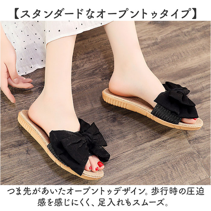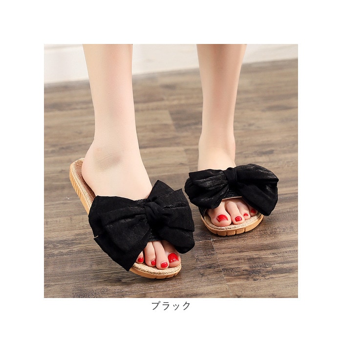 リボンルームシューズ スリッパ mmribbons23a【ブラック】【Sサイズ】
