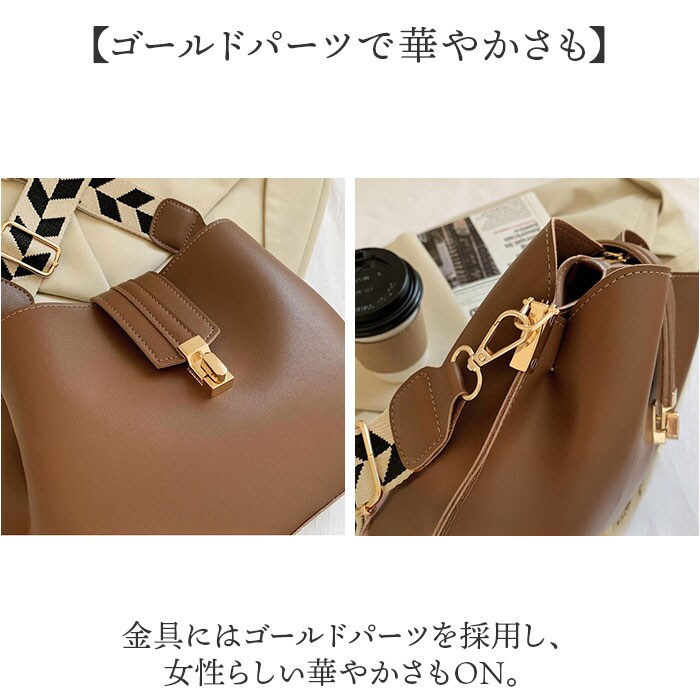 | サイズ | [縦]約18cm/[上部横幅]約20cm/[底部横幅]約24cm [マチ]約9.5cm/[ショルダー]約72cm~約110.5cm(調節可能) ※サイズは当店計測の実寸サイズです。実際の商品ならびにメーカー表記サイズとは多少の誤差が生じる場合がございます。あらかじめご了承ください。 |