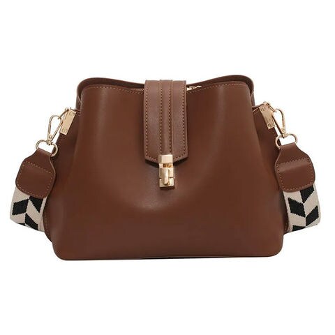 ショルダーバッグ アーガイル柄ストラップ【ダークブラウン】