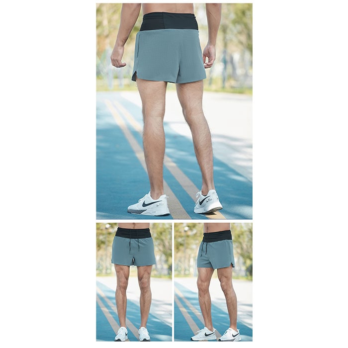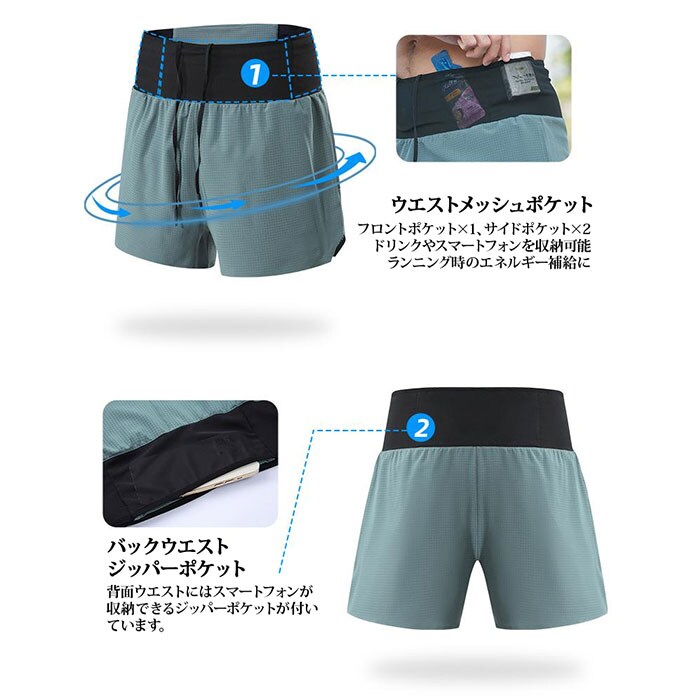 ウエストポケット付き スポーツウェア ハーフパンツ【グレーグリーン】【Mサイズ】
