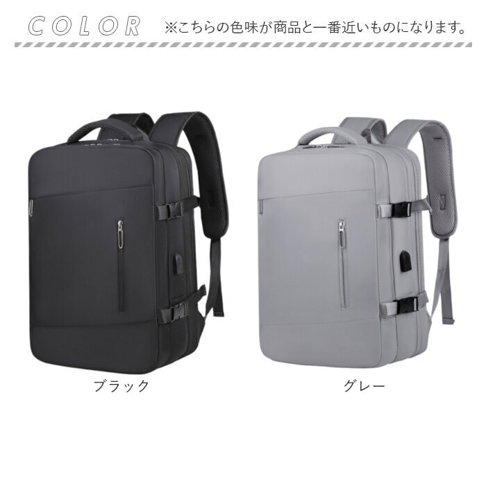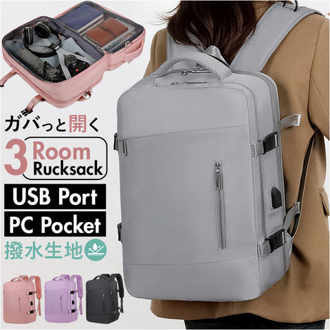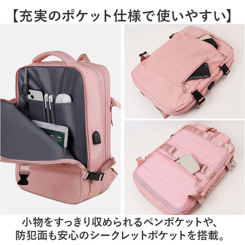 | 商品説明 | 【出張や旅行に最適な拡張タイプ☆】嬉しい3ルーム収納で、荷物をたっぷり整理整頓◎「リュック」が登場。【まるでスーツケースな使い心地♪】中央の収納は、ガバっと180度開くスーツケースのような作り。衣類をたっぷり収納できる!【PC収納やUSBポートつき!】クッション仕様のPCポケットで、デバイスの持ち運びもOK。ケーブルを繋げる、USBポートが便利【荷物を仕分けしやすい3つの収納】手前の収納には小物、中央は衣類やタオルなど(USBポート搭載)、背面収納にはPCや書類を収納◎【タフに使える撥水生地】屋外の環境に強い撥水生地を採用。小雨程度なら慌てずにOK! ※完全防水ではありません。【荷物の量に合わせて拡張できる】ファスナーを拡げて、サイドのベルトを緩めればバッグの拡張が完了!荷物が増えても安心。【クッション&胸バックルでラクラク】ストラップと背中にクッションを配置。胸バックルつきで、身体にフィットし負担を軽減。【充実のポケット仕様で使いやすい】小物をすっきり収められるペンポケットや、防犯面も安心のシークレットポケットを搭載。【キャリーオン機能をプラス!】スーツケースに取り付け可能のベルトを搭載!移動もラクラクの高機能性◎【取り外し可能のキーリング付き】パスケースや鍵をつけられる、キーリングを搭載。必要に応じて取り外しができるのがポイント【ポケット仕様】フロント:ファスナーポケット×2フロント収納:ペンポケット×2、オープンポケット×2、メッシュポケット×1背面収納:PCポケット×1、オープンポケット×1背面:ファスナーポケット×1 |
