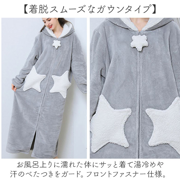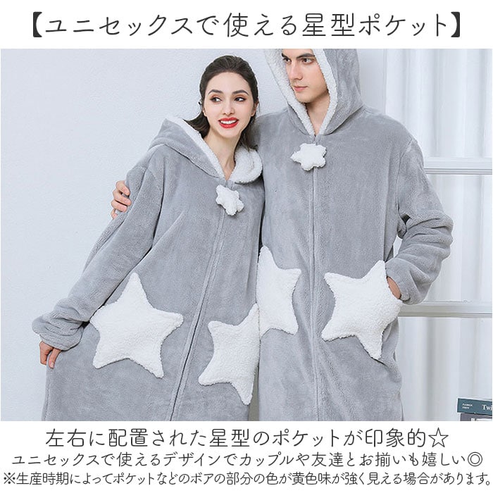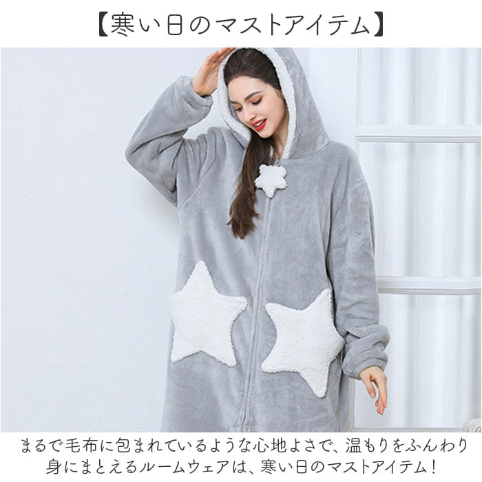 | 商品説明 | まるで毛布を着ているような心地よさ♪軽くてあたたかいふんわりボアのルームウエアの登場。【寒い日のマストアイテム】まるで毛布に包まれているような心地よさで、温もりをふんわり身にまとえるルームウェアは、寒い日のマストアイテム!【ロングタイプで足元までポカポカ】ロングタイプなので、冷えやすい下半身を守ってくれて、防寒アイテムとしてとっても優秀♪【部屋着の上からも防寒】ふんわり心地よい素材が、体を優しく包みこんで寒さから守る♪フードも付いており、部屋着の上にプラスすれば可愛さUP!【着脱スムーズなガウンタイプ】お風呂上りに濡れた体にサッと着て湯冷めや汗のべたつきをガード。フロントファスナー仕様。【ユニセックスで使える星型ポケット】左右に配置された星型のポケットが印象的☆ユニセックスで使えるデザインでカップルや友達とお揃いも嬉しい◎(※生産時期によってポケットなどのボアの部分の色が黄色味が強く見える場合があります。)【大きなポケットで手ぶらで移動】腰の高さには、使い勝手のいい2つの大きなポケット付き!おうちの中でスマホや小物を簡単持ち運び♪【腕まくりOKで家事もできちゃう】腕をサッとまくれる袖口ゴムタイプなので、洗い物など水仕事の時も汚れを気にせず、家事が楽にこなせるのも嬉しいポイント! |