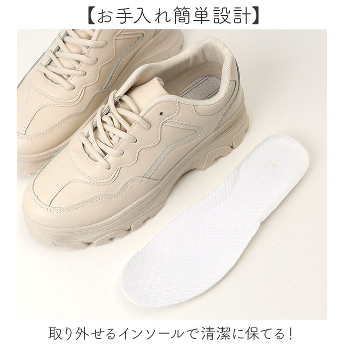 | 商品説明 | 【盛れる厚底スニーカー】厚底ソールで脚長効果抜群、おしゃれスニーカー。【足元を軽やかに見せる】スポーティーなデザインが今っぽさを演出☆【スタイルアップ効果】厚底ソールで自然に身長がアップする、嬉しいデザイン♪【疲れにくい履き心地】1日中歩いても快適な設計で、アクティブな日も安心◎【お手入れ簡単設計】取り外せるインソールで清潔に保てる! |