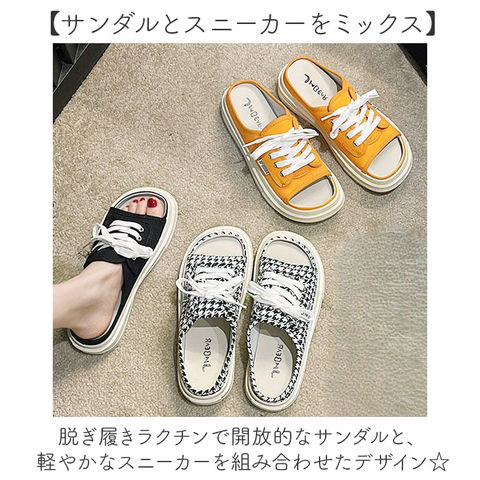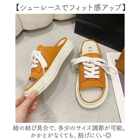 | 商品説明 | 【開放感も抜群☆大人可愛い1足】履き心地が良く、おしゃれにキマる!「スニーカー風サンダル」かかと無しタイプ。【サンダルとスニーカーをミックス】脱ぎ履きラクチンで開放的なサンダルと、軽やかなスニーカーを組み合わせたデザイン☆【締め付けを感じず、サラッと快適】つま先が開いたオープントゥデザイン。真夏でもムレにくく、足指に優しいつくり。【シューレースでフィット感アップ】紐の結び具合で、多少のサイズ調節が可能。かかとがなくても、脱げにくい◎【長時間履いても疲れにくい!】程よく柔らかいインソールが、衝撃を吸収して負担を軽減。インソールは取り外せて衛生的。【屈曲性があり歩きやすさが向上】つま先部分は足の動きに合わせて柔軟に曲がる◎蹴り上げやすくつまずきにくい!【安定感があり滑りにくいソール】フラットでやや厚みのある弾力ソール。凹凸を施した滑りにくい素材で、濡れた路面でも安心。【お気に入りを選べるカラー】ベーシックやアクセントになるカラー。コーデの外しアイテムとしても活躍! |