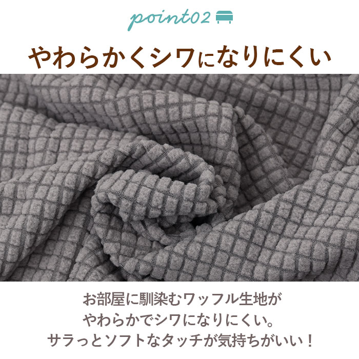 | 商品説明 | 【ソフトな肌触りが嬉しい】お部屋のイメチェンやソファ・オットマンの汚れ防止に☆ソファカバーが登場。【オールシーズン使えるソフトな生地】サラっとソフトなタッチが気持ちいい、1年中使える生地を採用。リラックスタイムにぴったり♪【ひとりでも楽々取り付けOK☆】グーンと伸びる素材で、ひとりでも気軽に取り付け可能!【お手入れも楽チン】汚れたら手洗いできるの嬉しいポイント。いつでも清潔に保てる◎【お部屋に馴染むワッフル生地】シンプルな無地に肌触りのよい凸凹をプラス。ほどよいアクセントで、インテリアにマッチ。【傷や汚れからのカバーに】ホコリや傷、ペットとお子さまのイタズラからソファーを守ってくれるのも魅力的。【2つのサイズ展開】MサイスとLサイズからお手持ちのソファやオットマンに合わせて選べる。 |