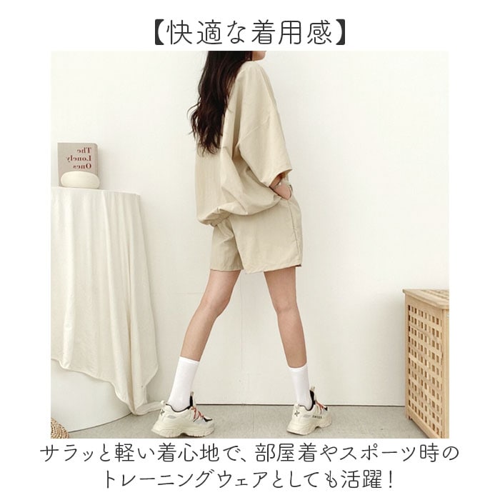 | 商品説明 | 【スポーティーな着こなしに♪】シャカシャカ生地がスポーティーなハーフジップのトップスとショートパンツのセットアップ。【すっきりまとまるセットアップ】そのまま着るだけでおしゃれなコーディネートを楽しめる上下セット。【ハーフジップタイプのトップス】トップスはハーフジップタイプで、着脱ラクラク。ゆるっとした着こなしでこなれ感をプラス。【ウエストゴム仕様】パンツはゴム仕様で締め付け感なし。両サイドにポケット付き。【お手入れしやすい速乾生地】洗濯機で簡単に洗えるのも魅力。お手入れが簡単なので、毎日の使用にも最適。【快適な着用感】サラッと軽い着心地で、部屋着やスポーツ時のトレーニングウェアとしても活躍! |