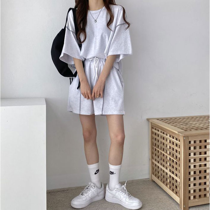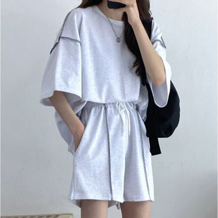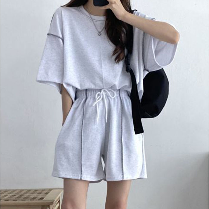 ショートパンツ Tシャツ セットアップ【ライトグレー】