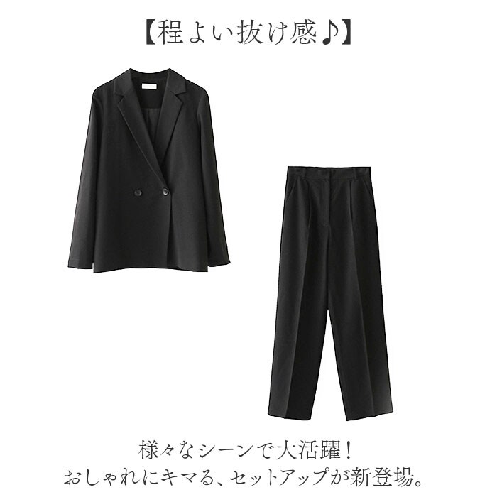 | 商品説明 | 【程よい抜け感♪】様々なシーンで大活躍!おしゃれにキマる、セットアップが新登場。【スタイリッシュなセットアップ】ジャケットとパンツの2点セット。ざっくりと羽織るだけでおしゃれなスーツスタイルが完成。【シンプルなダブルジャケット】フロントボタンが2列になった上品なデザイン。落ち感のあるシルエットでこなれ感をプラス。【程よい太さのパンツ】脚のライを拾いにくい太めのシルエット。フロントにタックを配置しているので、脚長効果も◎【ストレスフリーな着心地】パンツのフロントはボタン&ファスナー、バックはゴム仕様なのでスッキリ見えつつ締め付け感なし!【ベーシックなカラー】ビジネスシーンやお出かけにも使いやすいシンプルでスタイリッシュなデザイン&カラー。 |