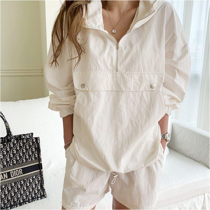 ウィンドブレーカー風セットアップ スポーティ【ホワイト】
