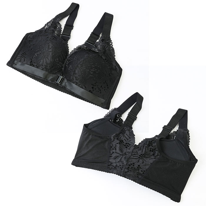 | 商品説明 | バストを心地よくホールド!きれいなシルエットを作り出すフロントホックブラと、ショーツのセットが新登場。【上品な印象を演出】透け感のあるレースデザインをプラスし、いつも可愛くいたい女性にぴったり。カラーによって異なる雰囲気もポイント。《ブラジャー》【締めつけ感のないノンワイヤータイプ】アンダー部分はノンワイヤー仕様なので、窮屈感が苦手な方におすすめ!軽やかでストレスフリー。【フロントホックタイプ】フロントのホックで簡単に着脱できるのが嬉しい♪授乳もスムーズに対応!【バストのカタチをキープ】バストをしっかり包み込む、もっちりとした立体カップ設計。程よい硬さの脇高サイドボーンが前へ押し上げ、横流れを防止。【心地よい着用感】肌に当たる部分はサラッとしたメッシュ生地のソフトパッドで、ムレにくく肌に負担をかけないつくり。カップ一体型だから、パカパカせず安定感もばっちり。【背中もキレイ魅せ】背中すっきりV字ライン。バックスタイルも抜かりなし♪《ショーツ》【誰でも使いやすいデザイン】お尻を優しく包み込んでくれるカタチ◎クロッチ部分は安心の二重構造。【大人な仕上がり】エレガントな印象をアップさせる、前面レース仕様。 |