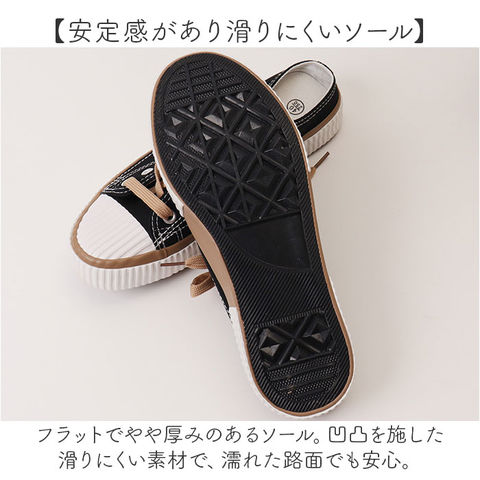 | 商品説明 | 【サッと履けて大人カジュアルな1足】スリッパのように足入れできて、おしゃれにキマる!「キャンバスシューズ」かかと無しタイプ。【室内でも屋外でも使えて便利】スニーカーの履き心地はそのままに、脱ぎ履きがスムーズ◎職場などでの履き替え用にも。【シューレースでフィット感アップ】紐の結び具合で、多少のサイズ調節が可能。かかとがなくても、脱げにくい◎【締め付けを感じにくくムレにくい】足全体が覆われないので、ストレスフリー。汗ばむ季節も、嫌なムレを抑えられる♪【清潔を保ち交換もOKなインソール】インソールは取り外せて衛生的&交換も可能。程よく柔らかで衝撃を吸収し、負担を軽減。【屈曲性があり歩きやすさが向上】つま先部分は足の動きに合わせて柔軟に曲がる◎蹴り上げやすくつまずきにくい!【安定感があり滑りにくいソール】フラットでやや厚みのあるソール。凹凸を施した滑りにくい素材で、濡れた路面でも安心。【持っていればヘビロテ間違いなし】ベーシックなカラー&シンプルデザイン。ラフなスタイルに素敵にマッチ☆ |