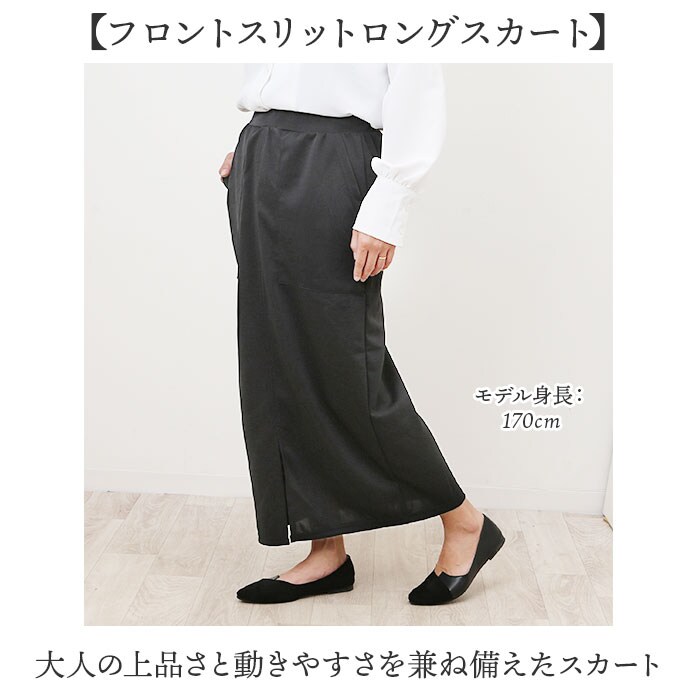 | 商品説明 | 【フロントスリットロングスカート】大人の上品さと動きやすさを兼ね備えたスカート!【綺麗なラインのシルエット】フロントスリットが歩く度に上品な抜け感を演出◎【ストレッチ素材で快適】伸縮性のある生地で楽ちんな履き心地♪【柔らかい生地感】普段使いにもお出掛けにもストレスフリーな着心地。【大きめポケット付き】左右にポケットがあり小物収納も安心♪ |