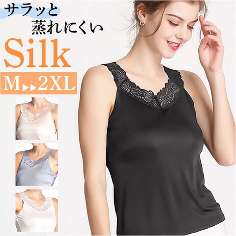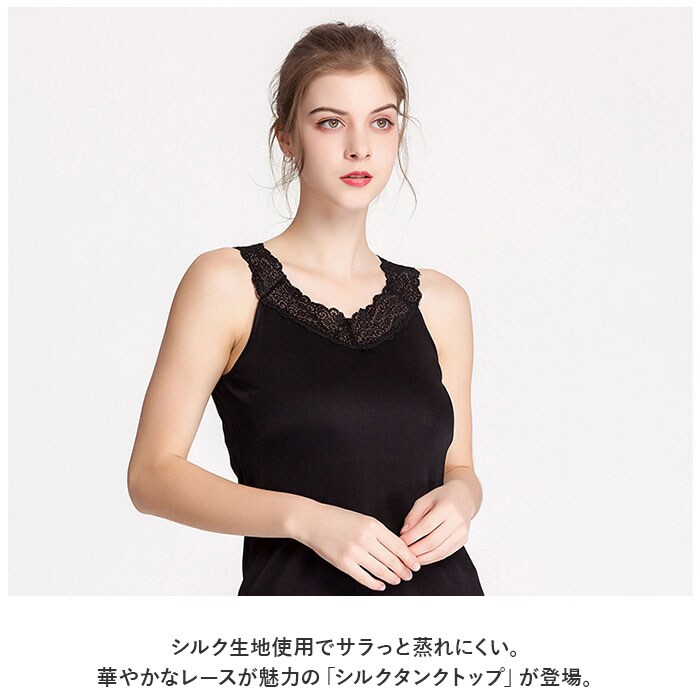 タンクトップ レース シルク mmskttp0711b【ブラック】【Mサイズ】