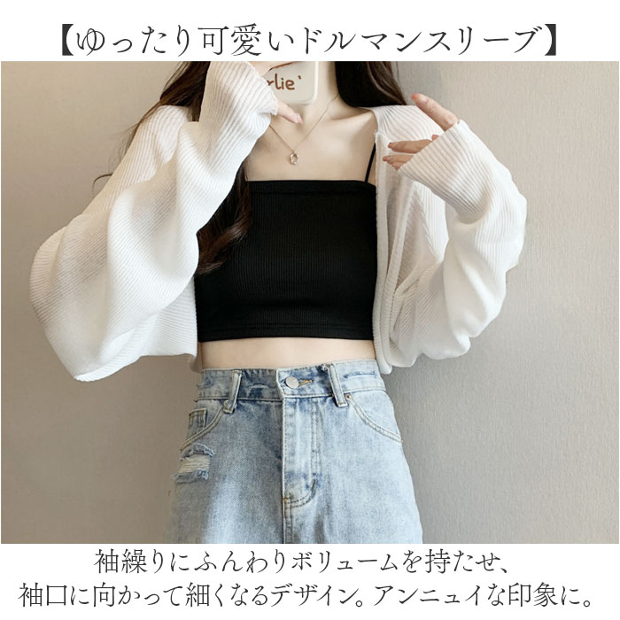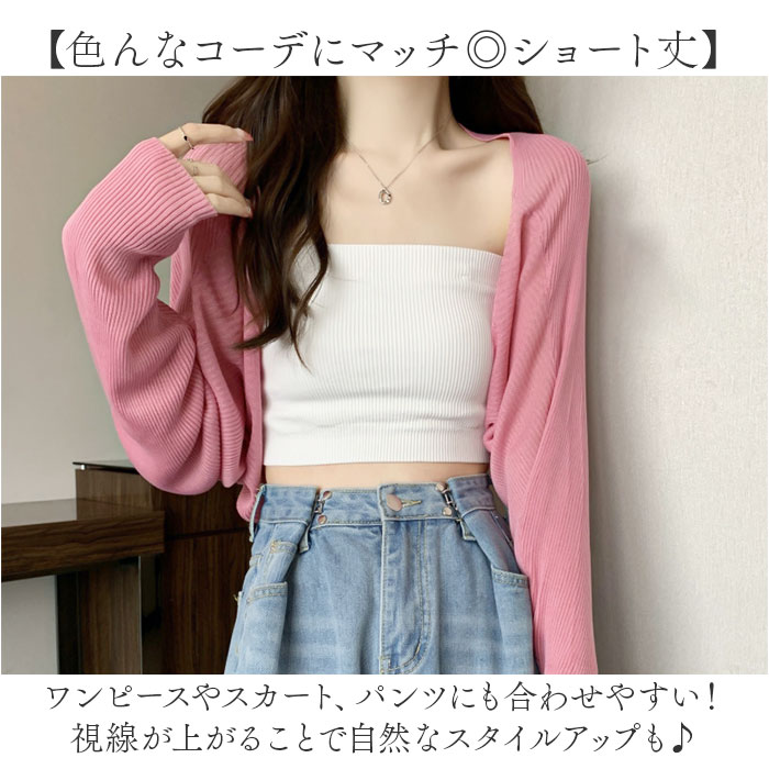 | 商品説明 | 【トレンドライクなおしゃれアイテム】こなれ感のあるコーデが完成♪着回し力バツグンな、ショート丈カーディガン。【色んなコーデにマッチ◎ショート丈】ワンピースやスカート、パンツにも合わせやすい!視線が上がることで自然なスタイルアップも♪【ヘルシーな肌魅せで差を付ける】ちょこっと透け感のある、薄手のリブ生地。フロントがざっくり開いて、デコルテもすっきり。【ゆったり可愛いドルマンスリーブ】袖繰りにふんわりボリュームを持たせ、袖口に向かって細くなるデザイン。アンニュイな印象に。【軽やかでストレスフリーな着心地】体に負担をかけず、サラッと羽織れる!柔らかな肌触りで締め付けもなく、ゆるりと快適◎【持ち運びやすく色んなシーンで重宝】冷房対策や紫外線対策にもおすすめ!シワにならず折りたためて、バッグインもスマート。【カジュアルにもキレイめにも万能】ベアトップインナーやカーゴパンツでラフなコーデ。上品なキャミソールワンピース等にも。【お気に入りを選べるカラー】ベーシックや差し色をラインナップ。シンプルなワンカラー仕上げで、ヘビロテ確定☆ |