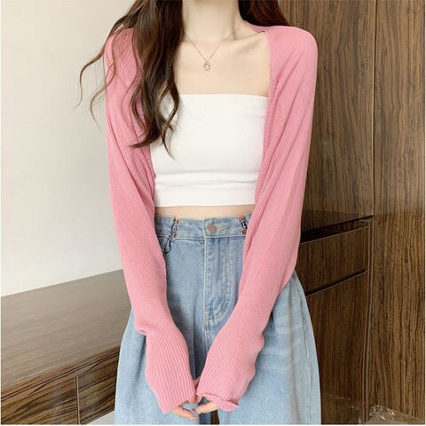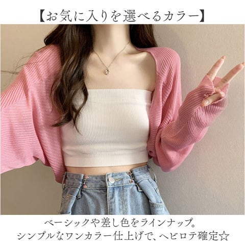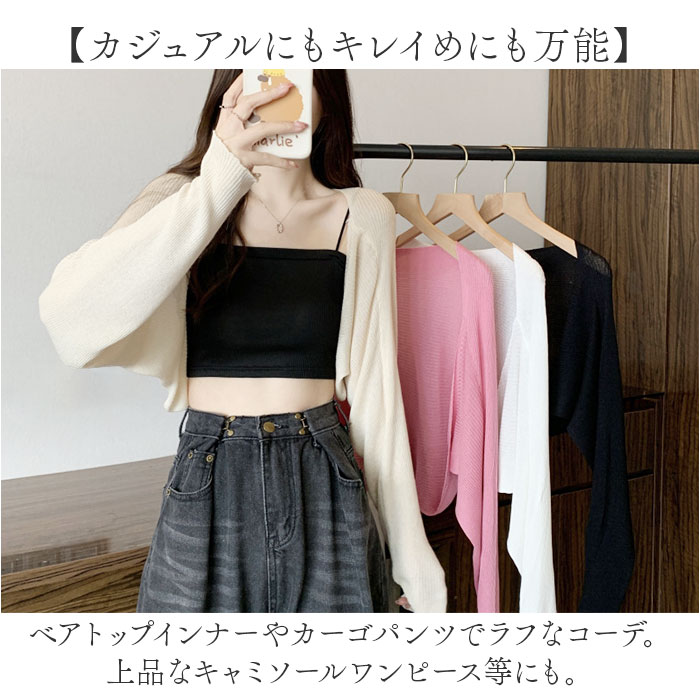 カーディガン ショート丈 シアー【ピンク】
