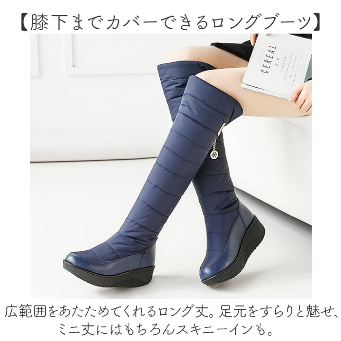 ロングスノーブーツ ウインターシューズ【ネイビー】【39(24.5cm)】