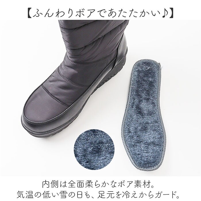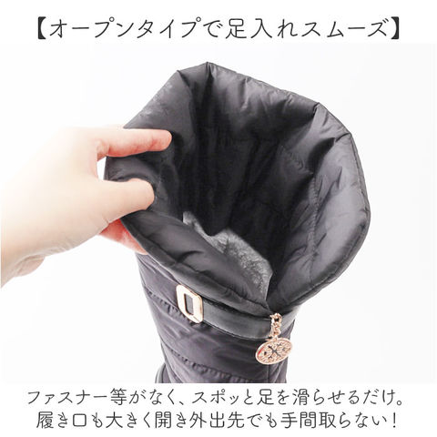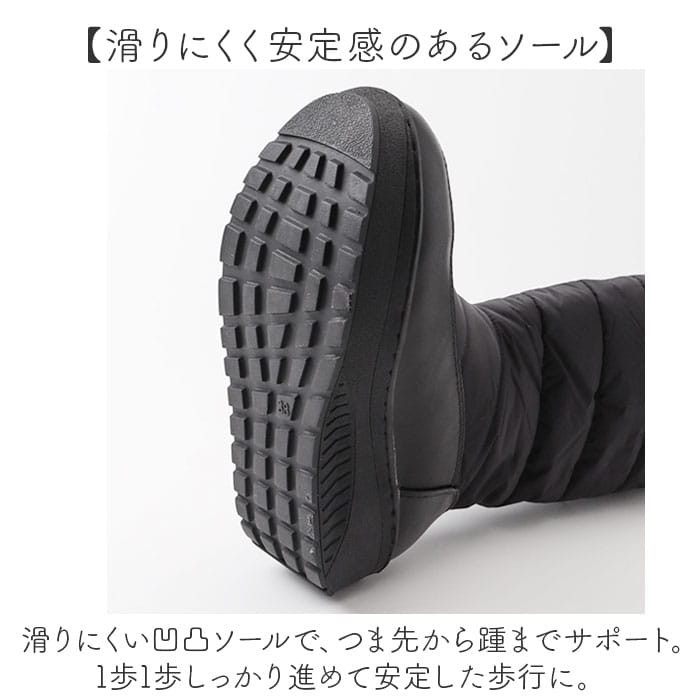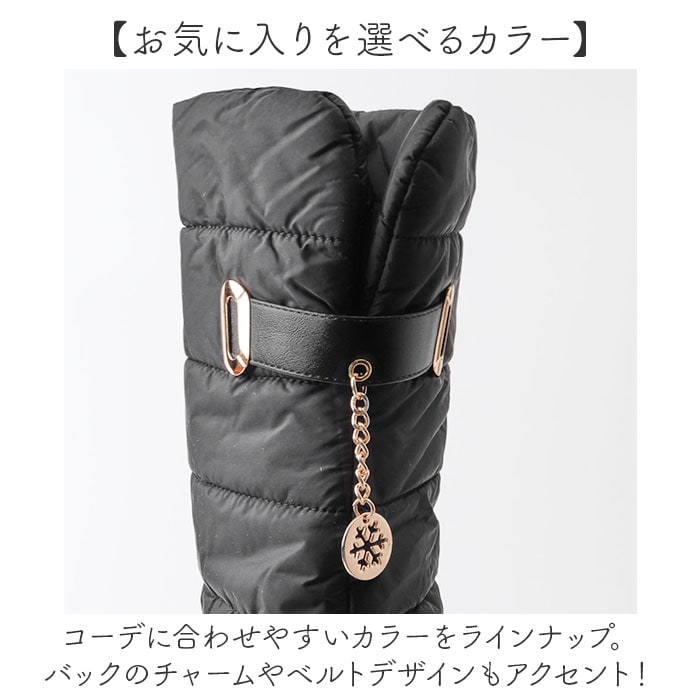 | 商品説明 | 【冷えて滑りやすい雪の日の相棒】しっかり防寒して、歩きやすさもばっちり。あたたかい裏起毛仕様の「ロングスノーブーツ」。【雪の日も抜かりなくおしゃれに☆】ふんわり程よいボリュームを出した仕上がり。シンプルながら、コーデのワンポイントに。【膝下までカバーできるロングブーツ】広範囲をあたためてくれるロング丈。足元をすらりと魅せ、ミニ丈にはもちろんスキニーインも。【オープンタイプで足入れスムーズ】ファスナー等がなく、スポッと足を滑らせるだけ。履き口も大きく開き外出先でも手間取らない!【ふんわりボアであたたかい♪】内側は全面柔らかなボア素材。気温の低い雪の日も、足元を冷えからガード。(※1)インソールは取り外し可能です。【屈曲性があり、歩きやすさが向上】つま先部分は、足の動きに合わせて柔軟に曲がる上向き形状。蹴り上げやすくつまずきにくい!【滑りにくく安定感のあるソール】滑りにくい凹凸ソールで、つま先から踵までサポート。1歩1歩しっかり進めて安定した歩行に。【雪や雨をサッと弾く耐性をプラス】表面は撥水性があり、お天気の悪い日も安心。お手入れも拭き取るだけ。(※2)完全防水ではありません。【お気に入りを選べるカラー】コーデに合わせやすいカラーをラインナップ。バックのチャームやベルトデザインもアクセント! |