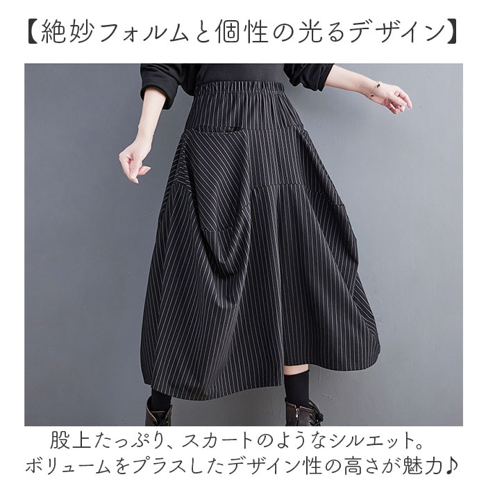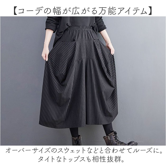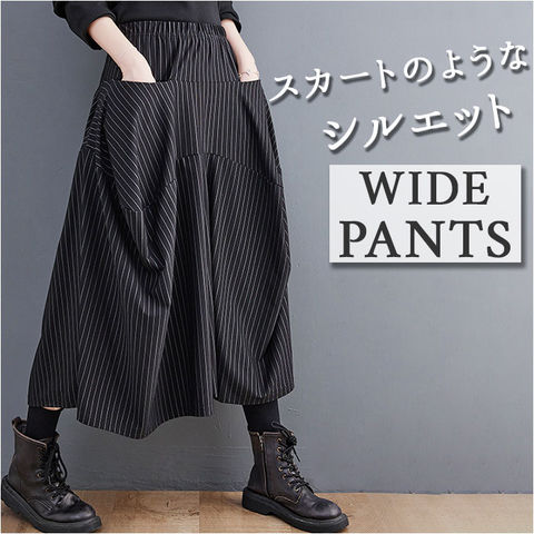 | 商品名 | スカート風ワイドパンツ ストライプ柄 ウエストゴム |