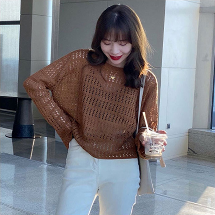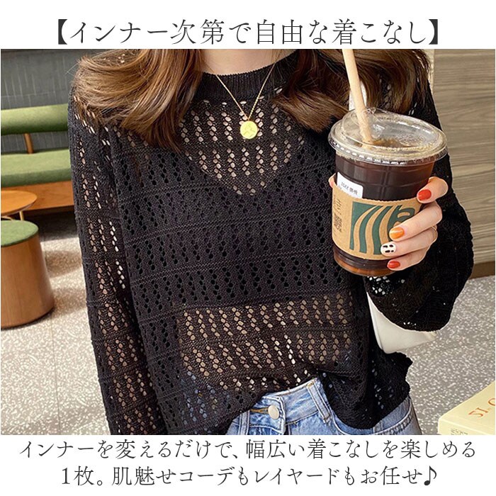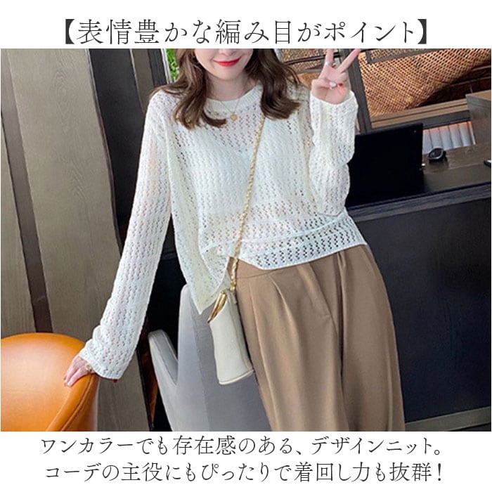| 商品名 | 透かし編みニット トップス ショート丈 |