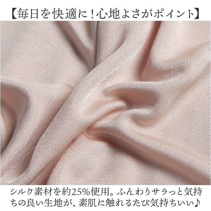 | 商品説明 | 【ふんわりシルクの優しい肌触り♪】締め付け感の少ない、ラクさが魅力。「タップパンツ」が登場。【毎日を快適に!心地よさがポイント】シルク素材を約25%使用。ふんわりサラっと気持ちの良い生地が、素肌に触れるたび気持ちいい♪【締め付けないからストレスフリー】ウエストは幅広レース仕様。食い込みにくく快適。生地全体もストレッチ性があり動きやすい!【透け防止から冷え対策まで◎】透け防止のインナー、夏場の冷え対策、静電気のもたつき、気になる汗染みに…等、お悩み解決!【安心の履き心地】股上は深めの作り。おへそ下まですっぽりと覆う、安心感のある履き心地。【ソフトで可愛さUPのすそメロウ】裾は、締め付けずソフトな肌触りなメロウ仕上げ。見た目の可愛さもUPして気分もUP♪ |