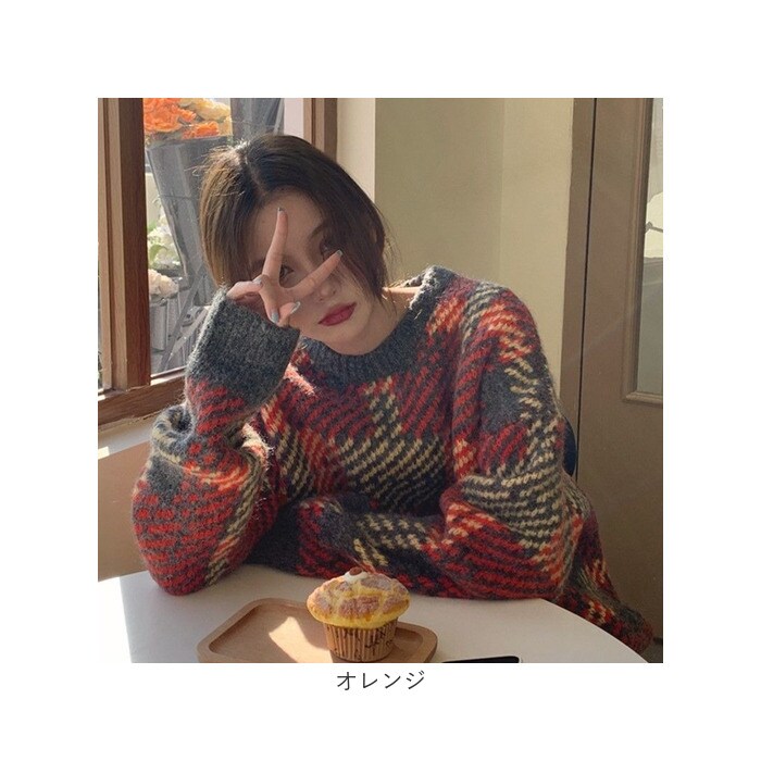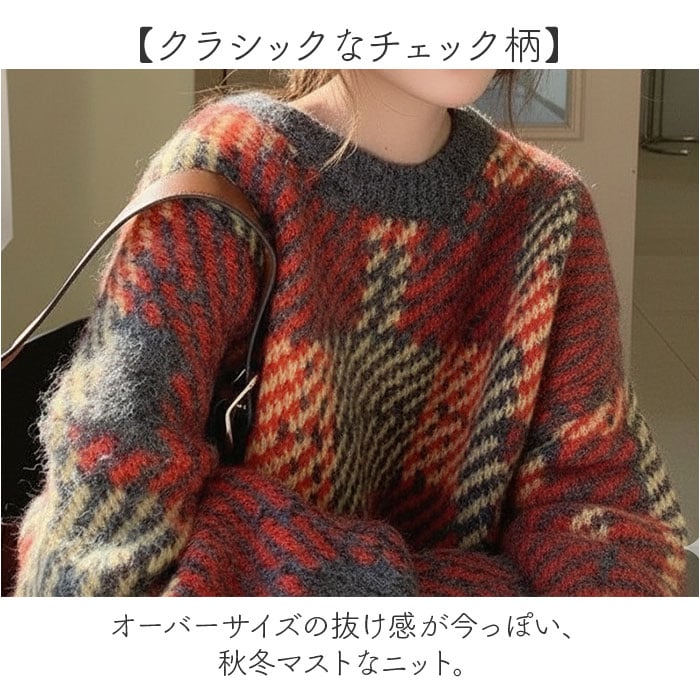 | 商品名 | ニットセーター トップス チェック柄 |