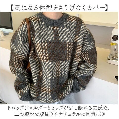 | 商品説明 | 【クラシックなチェック柄】オーバーサイズの抜け感が今っぽい、秋冬マストなニット。【ゆったりシルエットで楽ちん】リラックス感たっぷりのオーバーサイズで、着心地の良さとこなれ感を両立♪【気になる体型をさりげなくカバー】ドロップショルダーとヒップが少し隠れる丈感で、二の腕やお腹周りをナチュラルに目隠し◎【ほどよい厚みで寒い季節も安心】ニットで温かく、秋冬のデイリーコーデに欠かせないアイテム〇【どんなボトムスとも好相性】デニムやスカート、ワイドパンツまで幅広く合わせられる、着回し力抜群の万能トップス。 |
