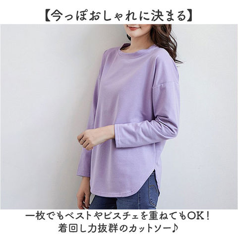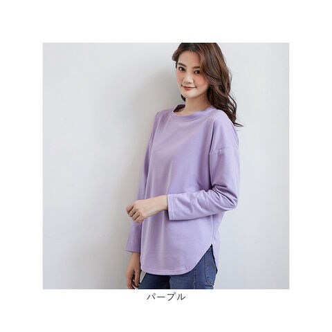カットソー トップス サイドスリット入り【パープル】【Lサイズ】