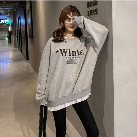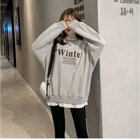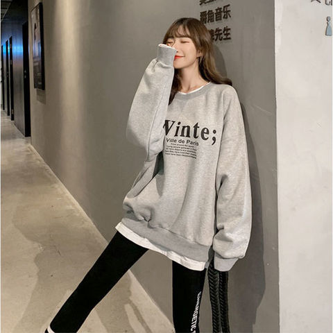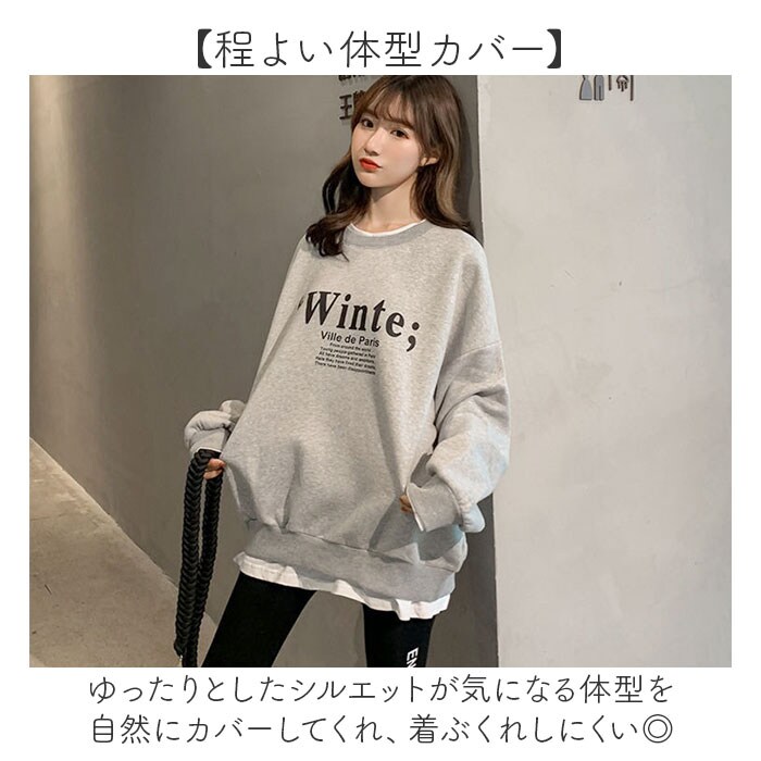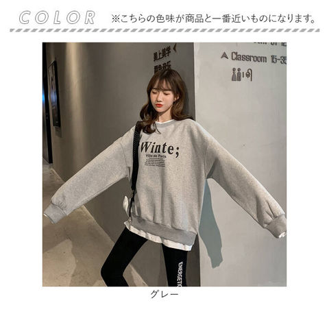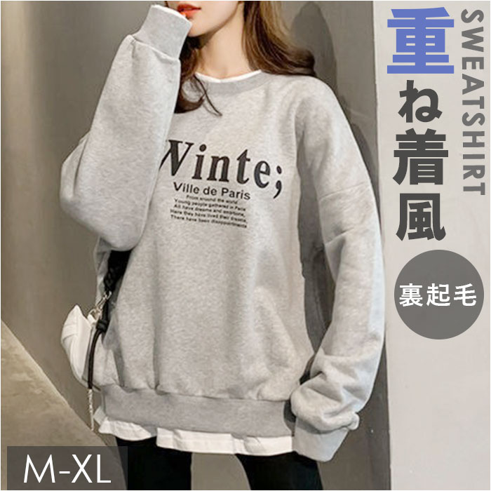 商品名重ね着風トップス ロゴ付き 裏起毛